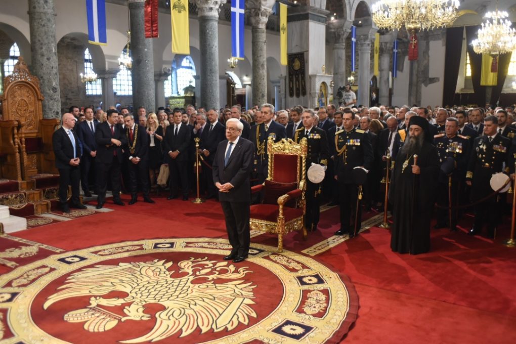 The President of the Hellenic Republic Mr. Prokopios Pavlopoulos, the Prime Minister Mr. Kyriakos Mitsotakis, the Minister of Defence of Cyprus Mr. Savvas Angelidis, the Chief of the National Guard General Staff Lieutenant General Ilias Leontaris, representatives of political parties, members of the Parliament and members of the Local Self-government attended the Doxology.