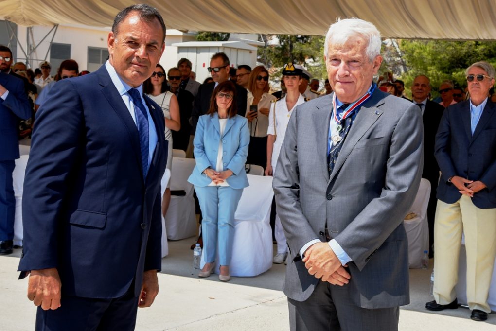 Under my capacity as the Minister of National Defence, I have the pleasure to award Mr Laskaridis the “Star for Valour and Honour”, because as a co-founder and president of the “Aikaterini Laskaridis” Foundation, during the long-lasting ascertained financial hardship that the Greek state suffers, characterised by generosity and altruism, he greatly contributed to the maintenance and reinforcement of operational capabilities and the fulfilment of the Navy’s numerous needs.