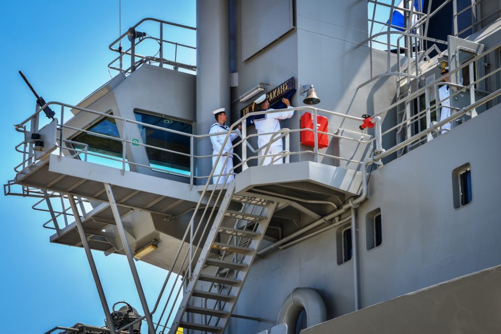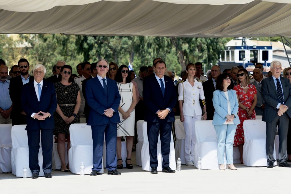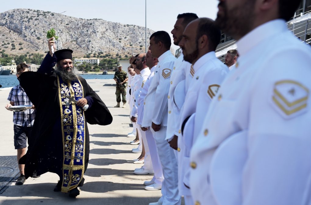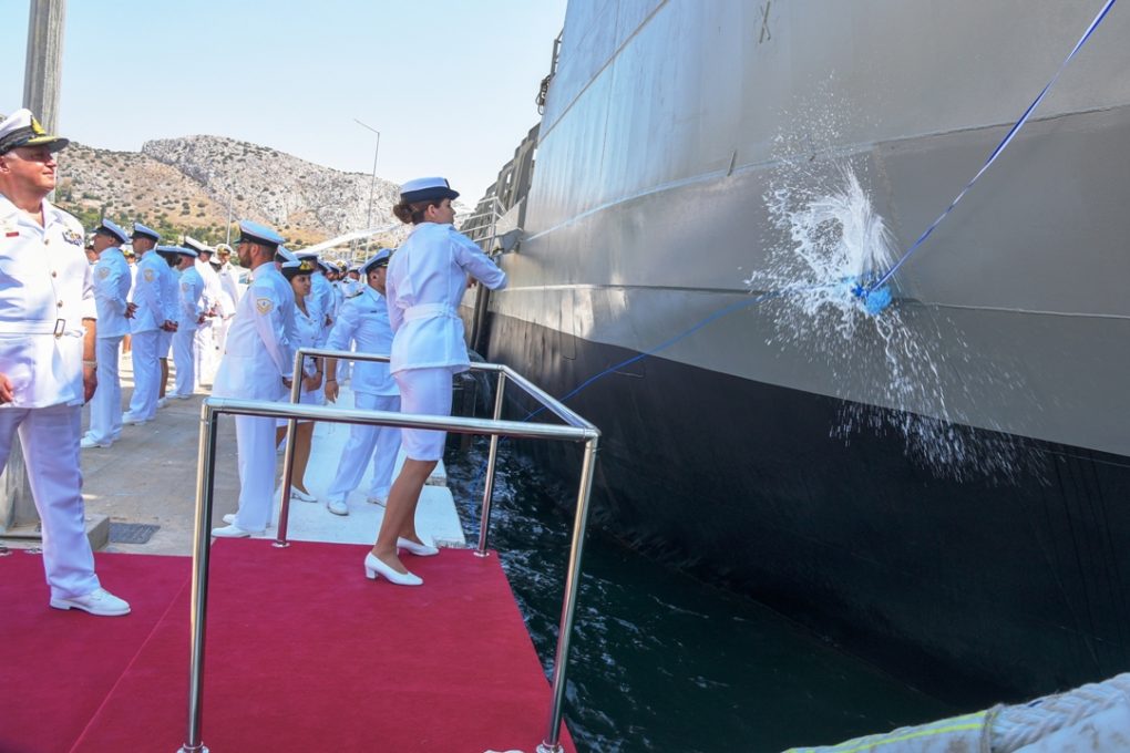 Finally, I invite the Captain and crew to fully exploit the ship’s capabilities and do their duty, capably maintaining the Navy’s tradition, which the Greek people look forward to with trust, both in peacetime and in hard conditions. May Saint Nikolaos always be at your bow. Thank you”.