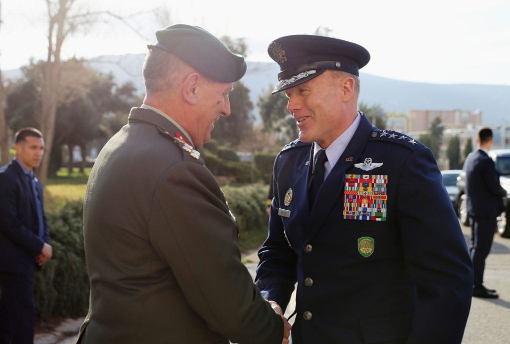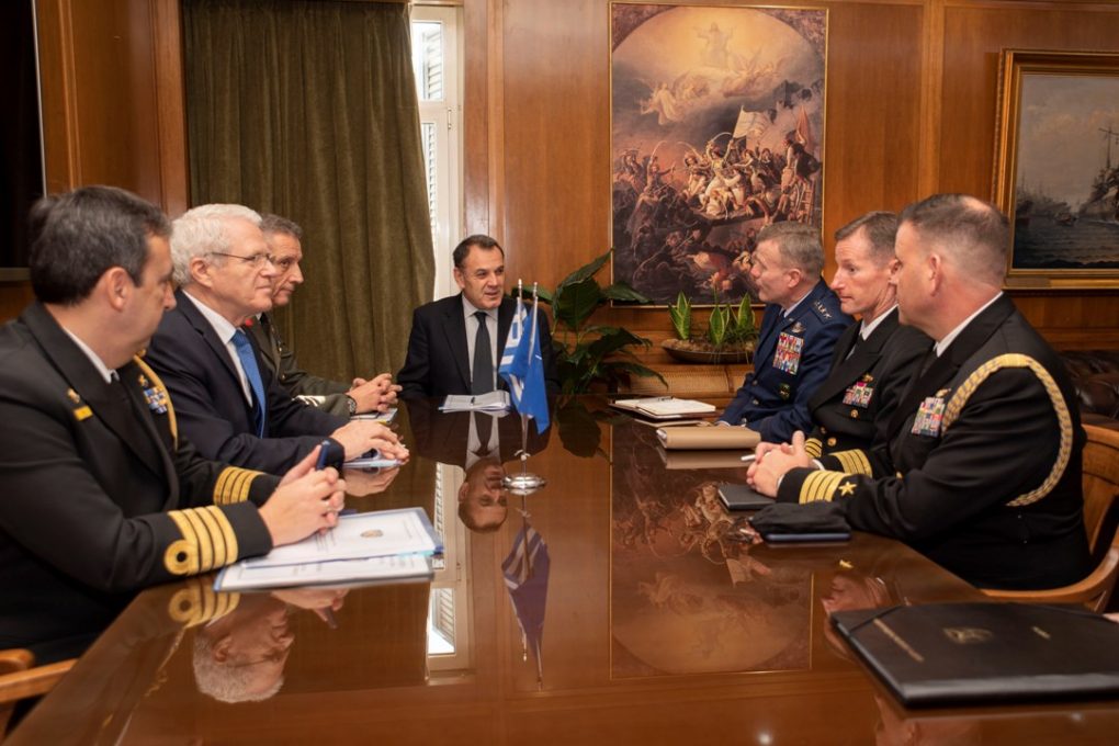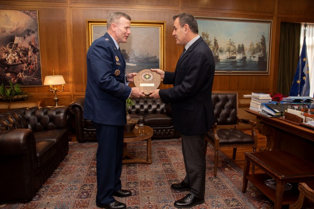 On Friday, 31 January 2020, the Minister of National Defence Nikolaos Panagiotopoulos, held a meeting with General Tod Wolters, Supreme Allied Commander, Europe (SACEUR), in the context of his visit to Athens. Afterwards, General Wolters had his first official contact with the Chief of the Hellenic National Defence General Staff, General Konstantinos Floros.