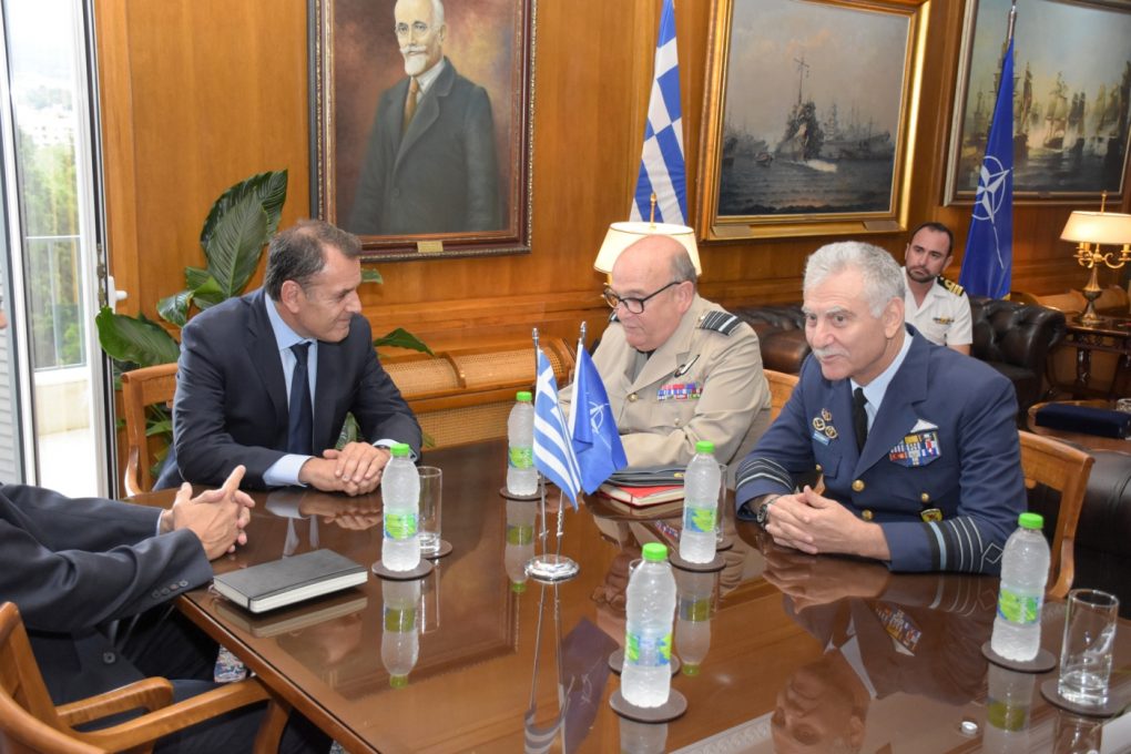 The Minister of National Defence then received at his office the Chairman of the NATO Military Committee (CMC), Air Chief Marshal Sir Stuart Peach, who is paying an official visit to Greece. The meeting was also attended by the Chief of Hellenic National Defence General Staff, General (HAF) Christos Christodoulou.