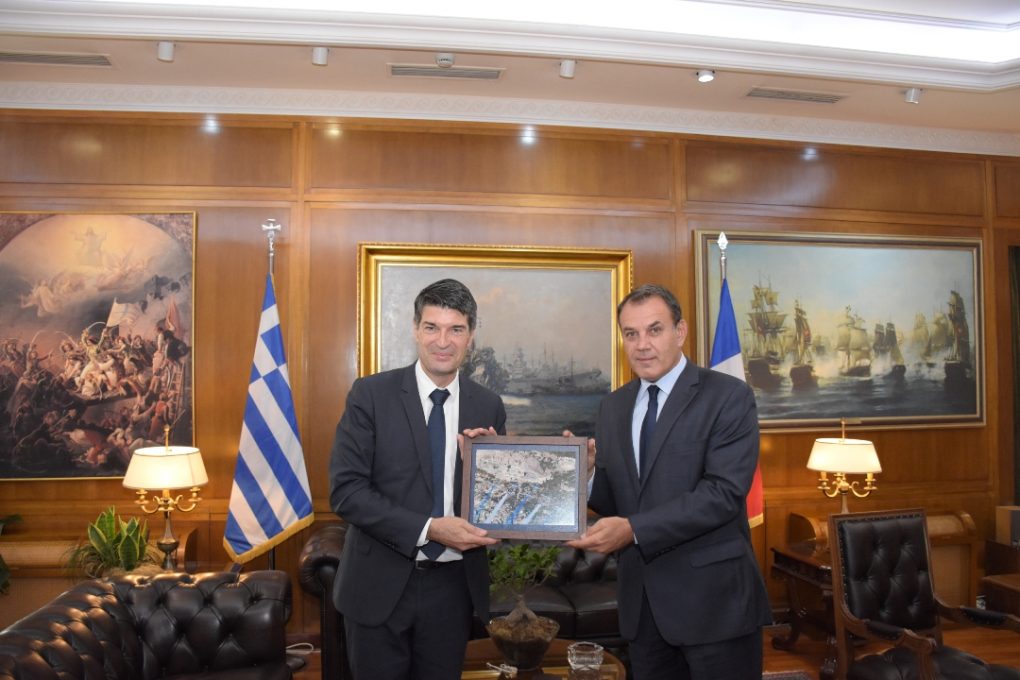 The Minister of National Defence Nikolaos Panagiotopoulos met today with the new Ambassador of France, Mr. Patrick Maisonnave. During the meeting, they stressed the excellent level of relations between the two countries and discussed the prospects for further enhancement of bilateral defence cooperation both at bilateral, as well as at NATO and EU level, and exchanged views on the security and stability challenges in the East Mediterranean.
