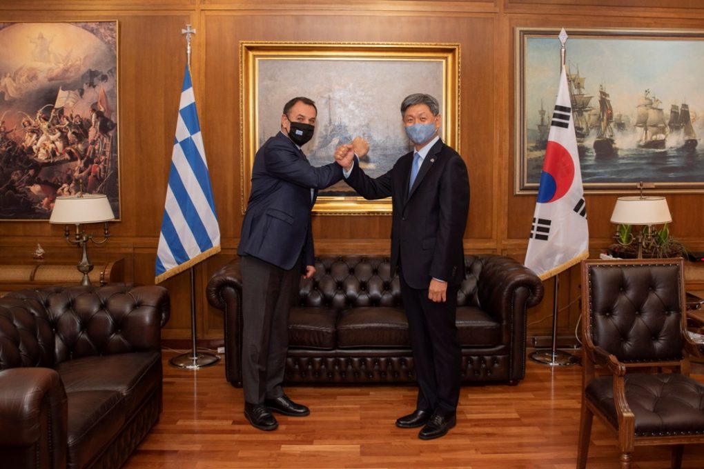 Today, Thursday 26 November 2020, the Minister of National Defence Mr. Nikolaos Panagiotopoulos, met with the Ambassador of the Republic of Korea Mr. Soosuk LIM and discussed matters of bilateral and international interest.
