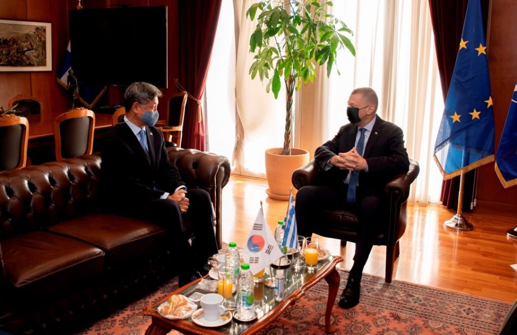 Earlier the Ambassador of Korea had met with the Deputy Minister of National Defence Mr. Alkiviadis Stefanis.