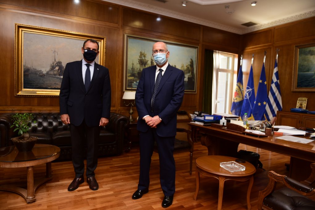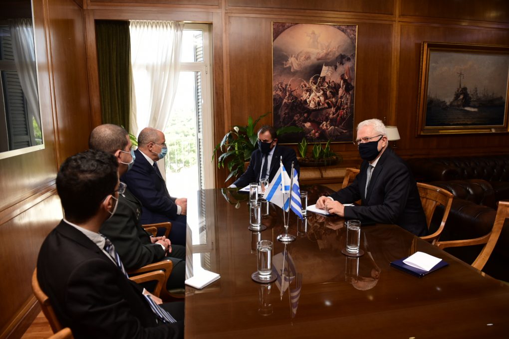 Today, Wednesday 12 August 2020, the Minister of National Defence Mr. Nikolaos Panagiotopoulos met with the Ambassador of Israel to Greece Mr. Yossi Amrani, with whom he discussed the regional developments as well as the security and stability challenges in the Eastern Mediterranean, resulting from the escalating, destabilizing and illegal actions of Turkey.
