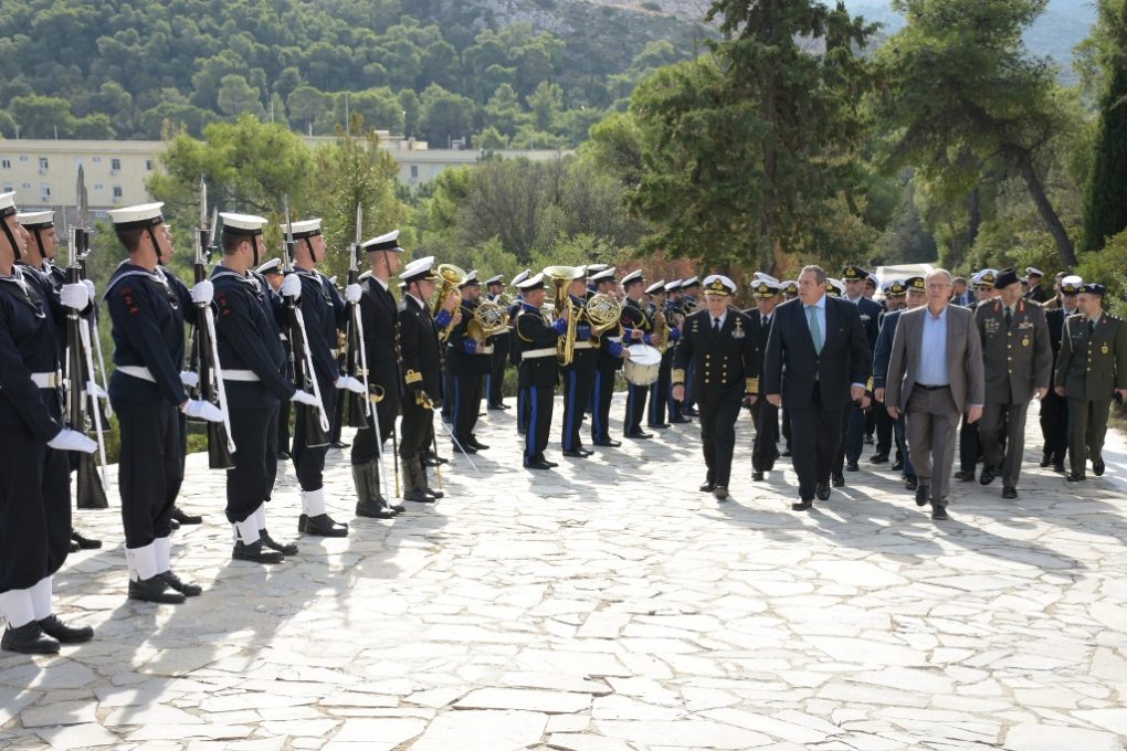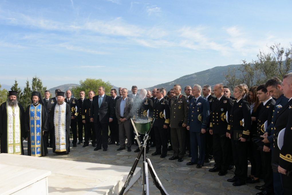 The Minister of National Defence Panos Kammenos, the Alternate Minister of National Defence Panagiotis Rigas, the Chief of Hellenic National Defence General Staff, Admiral Evangelos Apostolakis, the Chief of Hellenic Army General Staff, Lieutenant General Alkiviadis Stefanis, the Chief of Hellenic Navy General Staff, Vice Admiral Nikolaos Tsounis HN, and the Chief of Hellenic Air Force General Staff, Lieutenant General (HAF) Christos Christodoulou, attended the annual memorial service for the Navy’s fallen, which took place at “Kanellopoulos” Naval Base.
