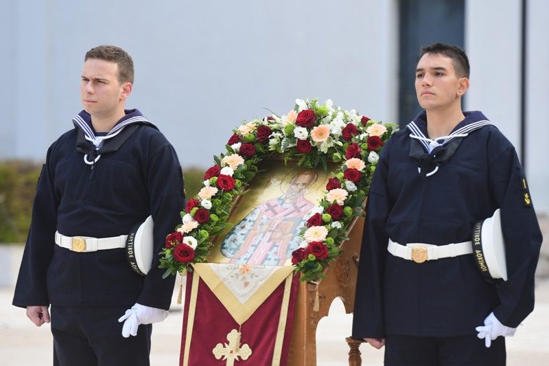 “This day, here in Piraeus, in the presence of the Mayor and the Deputy Regional Prefect of the country’s largest port, we are honoring with Christian resignation the Patron Saint of the Hellenic Navy and the Merchant Navy, Saint Nicholas, whose figure lives with and protects our seamen overseas under all the difficulties they are experiencing.