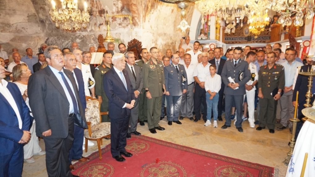 His Excellency, the President of the Hellenic Republic, Mr. Prokopis Pavlopoulos, and the Minister of National Defence, Mr. Panos Kammenos, as a representative of the government, accompanied by the Chief HAGS, Lieutenant General Alkiviadis Stefanis, attended the events for the Dormition of the Theotokos in Olympos, Karpathos.