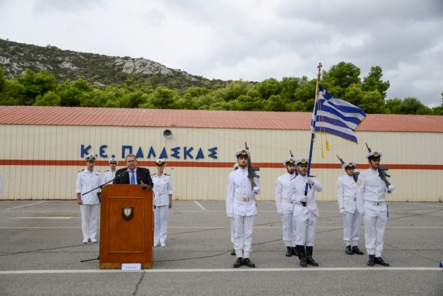 The Minister of National Defence Panos Kammenos, accompanied by the Chief on the Hellenic Navy General Staff Vice Admiral Nikolaos Tsounis, attended the oath-taking ceremony of 2018 C Enlistment Series new naval cadets, which took place at ‘Kanellopoulos’ Naval Base at Skaramangas Naval Fort.