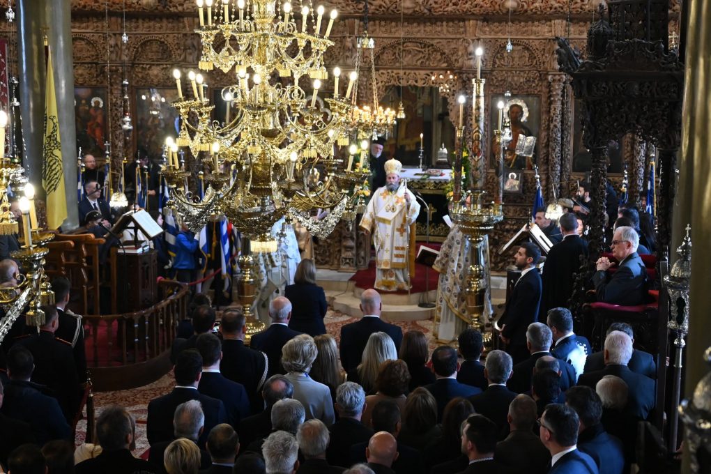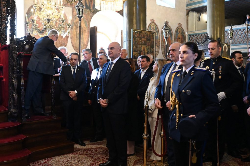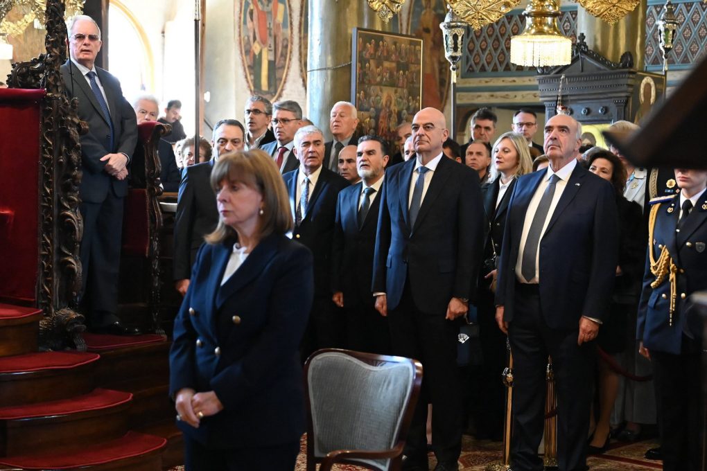 Mr. Dendias greeted Her Excellence, the President of the Hellenic Republic, Ms. Katerina Sakellaropoulou, at the Metropolitan Church of St. Athanasios, where the doxology was officiated by His Eminence, the Metropolitan of Ioannina, Mr. Maximos.
