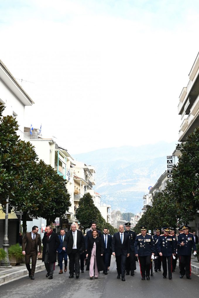Next, Mr. Dendias attended the parade of civilian organisations and military troops, while also in attendance were: the Speaker of the Hellenic Parliament Konstantinos Tasoulas, the leaders of the political parties “Spartiates” and “NIKI”, Vasilios Stigkas and Dimitrios Natsios, respectively, the Deputy Minister of Social Cohesion and Family Maria Kefala, the Vice-Chair of the Group of the European People’s Party Evangelos Meimarakis, MP Ioannis – Panaghiotis Tsimaris, the Head of the Region of Epirus Alexandros Kachrimanis, and the Mayor of Ioannina Thomas Bengas.