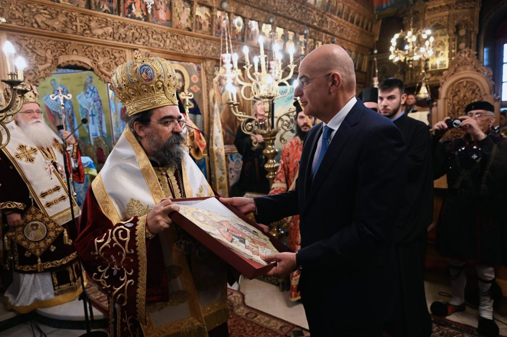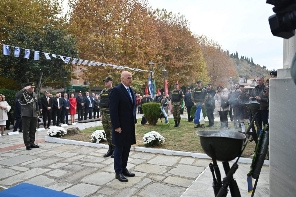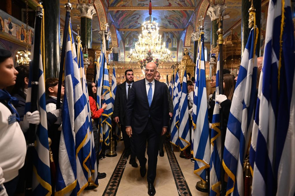 Following, Mr. Dendias laid a wreath at the Statue of Germanos Karavangelis and attended the parade of civilians and military sections in Megalos Alexandros Avenue.
