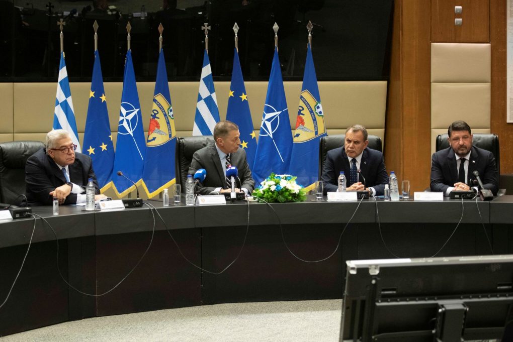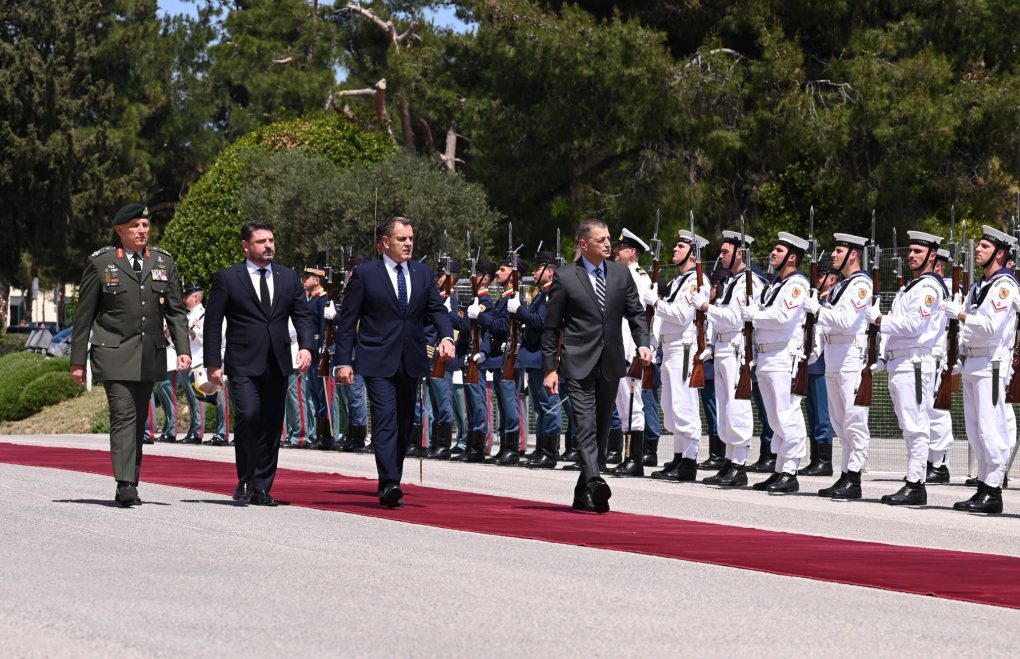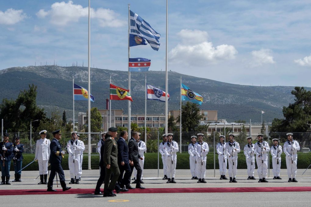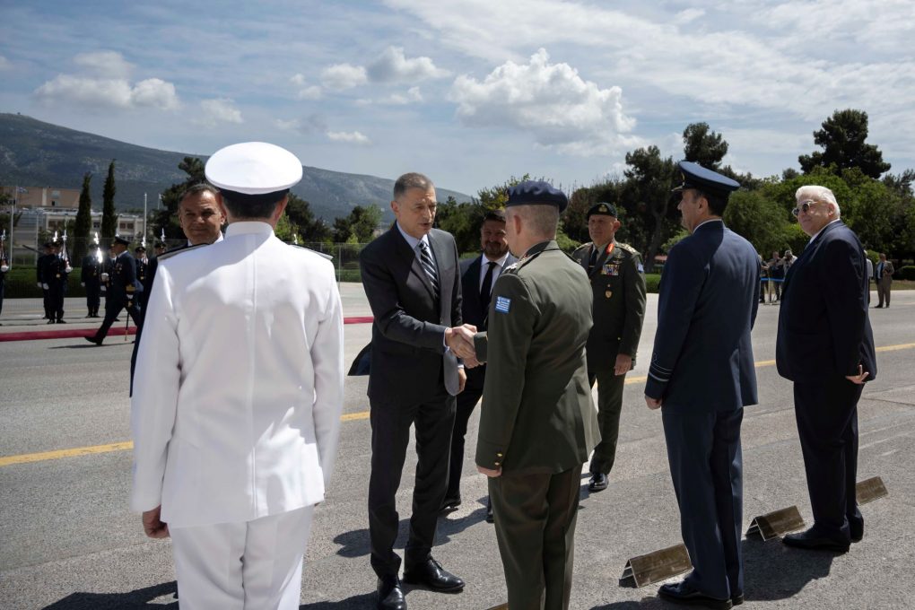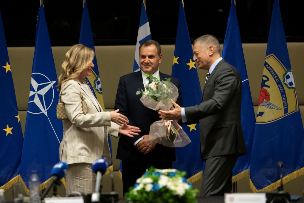 The ceremony was also attended by the outgoing Deputy Minister of National Defence, Mr. Nikolaos Hardalias, the Chief HNDGS, General Konstantinos Floros, the Secretary General of the Ministry of National Defence, Mr. Antonios Ikonomou, the Chief HAFGS, Lieutenant General (HAF) Themistoklis Bourolias, the Chief HAGS, Lieutenant General Angelos Choudeloudis, the Chief HNGS, Vice Admiral Ioannis Drymoussis HN, as well as other officials.