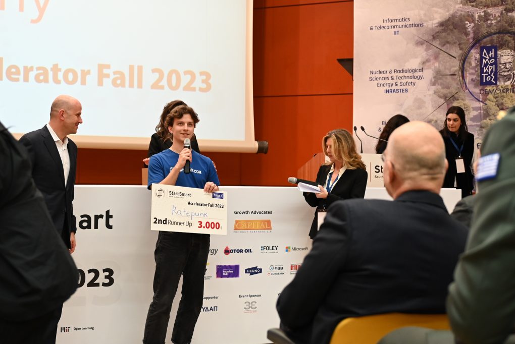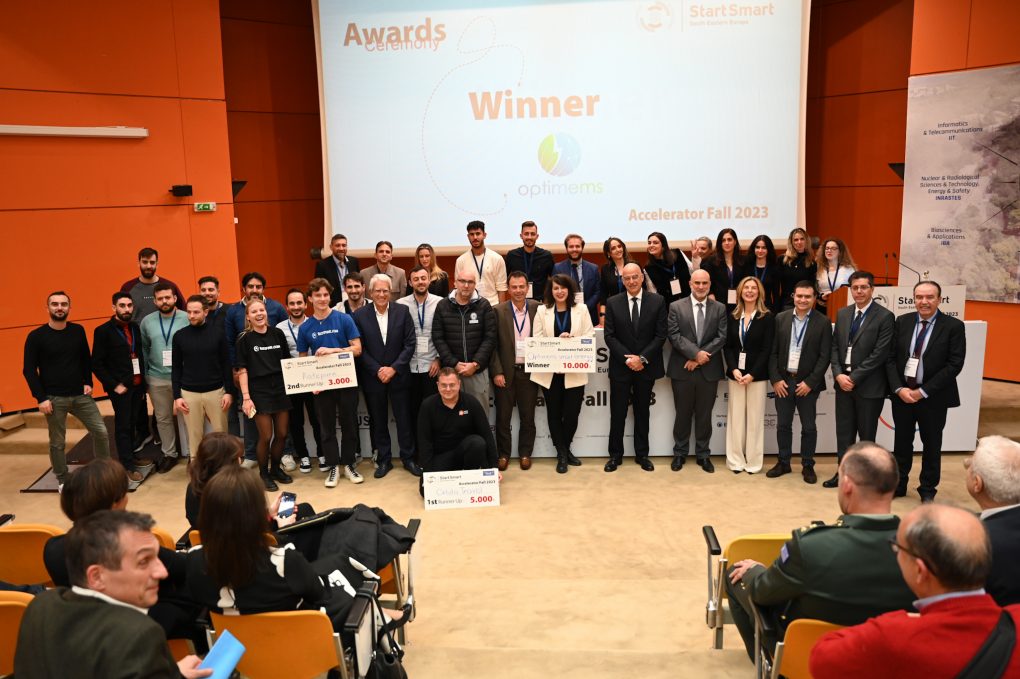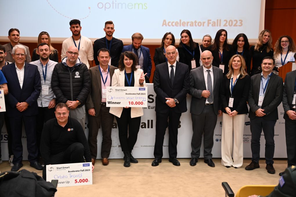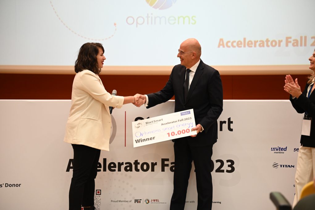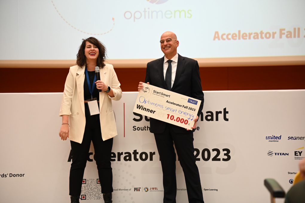 Mr. Dendias presented the 1st StartSmart SEE 2023 Accelerator Award for the programme of the Optimens Smart Energy team. The award was received by Aggelina Bitoundi. The rest of the team members are Dimitris Karanassos, Lambros Zyglakis, Christos Tibalexis, and Spyros Kopolas.
