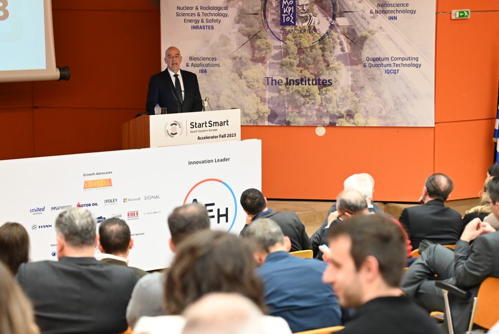 On Wednesday 13 December 2023, the Minister of National Defence, Nikos Dendias, made an address at the Award Ceremony for Startup Enterprises of the MIT StartSmart Accelerator programme, in Southeastern Europe. The ceremony which took place in the National Centre for Scientific Research “Democritos”, was organised by the Greek Technological Entrepreneurship Forum.