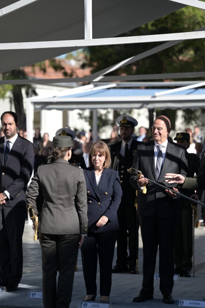 On Wednesday, 15 November 2023, the Minister of National Defence, Nikos Dendias, represented the Prime Minister and the government in the oath-taking ceremony of new Officers of the Nursing Officers Academy, as well as their presentation with swords by Her Excellency, the President of the Hellenic Republic, Ms. Katerina Sakellaropoulou.