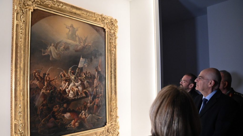 On Saturday 21 March 2026, in the framework of the commemorative celebrations for the 200 th anniversary of the Heroic Exodus of Messolonghi (1826-2026), the Minister of National Defence visited the Xenokration Archaeological Museum of Messolonghi, where the emblematic painting by Eugéne Delacroix “Greece on the ruins of Messolonghi” has been put up for
