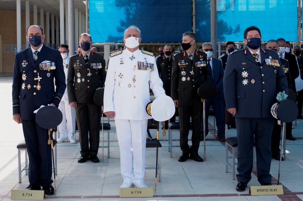 The ceremony was attended by the President of the Hellenic Parliament Mr. Konstantinos Tasoulas, the Minister of National Defence Mr. Nikolaos Panagiotopoulos, the Deputy Minister of National Defence Mr. Alkiviadis Stefanis, HNDGS Chief General Konstantinos Floros, HAFGS Lieutenant General (AF) Georgios Blioumis, HAGS Chief Lieutenant General Charalambos Lalousis, HNGS Vice-Admiral Stylianos Petrakis, parties, Church and Local Administration representatives.
