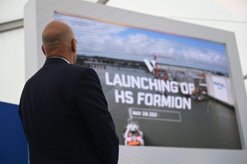 “I am now addressing you from a ship that is now Greek. We have not raised the flag yet, but this will happen very soon in the following months. You are aware of the delivery schedule. The ship will be delivered to the Hellenic Navy within 2025.