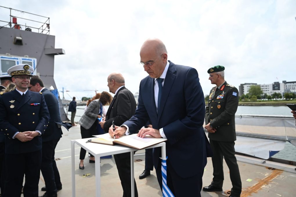 Mr. Dendias’s visit started with his official welcome by the Deputy Prefect of Lorient, Florence Bessy, at “Lann-Bihoué” Air Base. Subsequently, he went to the France Naval Detachment, where was briefed by its Commander, Captain Christos Michalitsis HN, on the FDI HN Frigate construction programme.