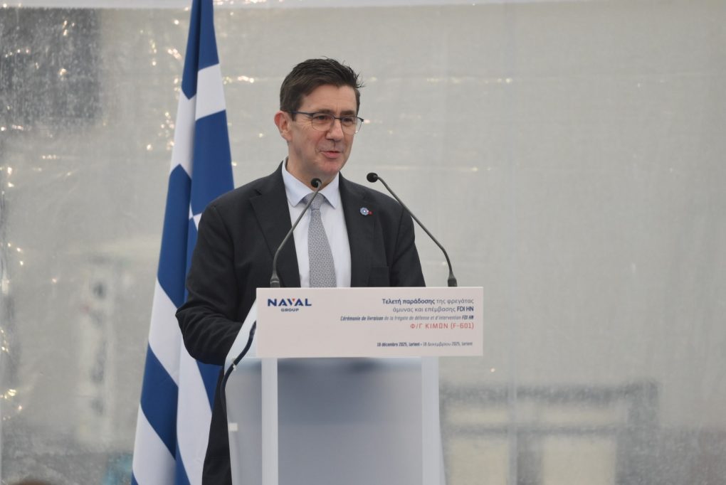 “It is a great honour to be here in Lorient today, at the shipyards of “Naval Group”, on the occasion of the extremely symbolic moment of the hoisting of the Greek flag aboard this defence and intervention frigate “KIMON”, the first FDI destined for the Hellenic Navy.