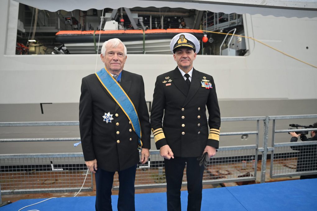 The Frigate’s Naming Ceremony followed, with honorary Rear Admiral Panos Laskaridis being the sponsor, and then the Greek Flag was raised and the crewmembers boarded the ship. Finally, the commissioning pennant was hoisted.
