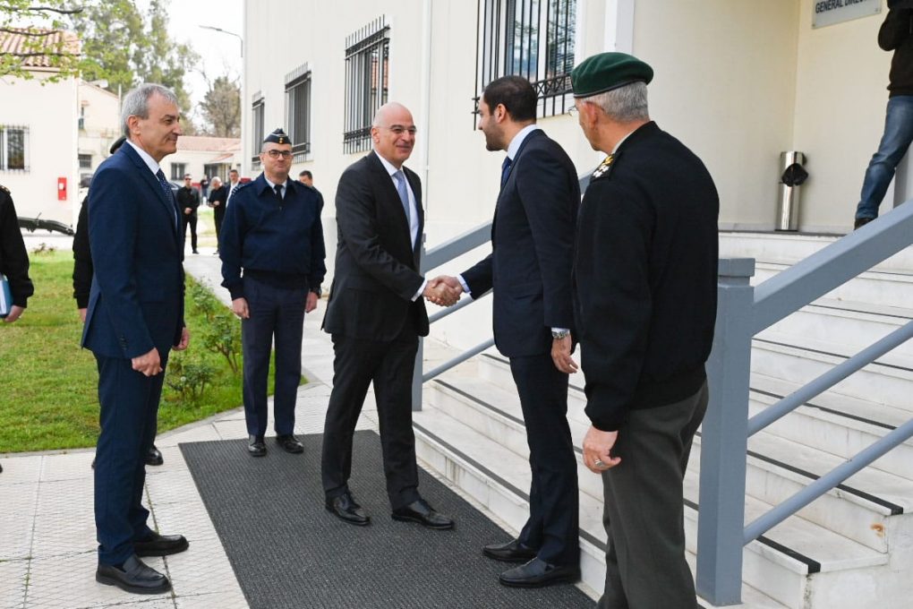 On Monday, 1 April 2024, the Minister of National Defence, Nikos Dendias, accompanied by the Deputy Minister of National Defence Mr. Ioannis Kefalogiannis, the Chief of Hellenic National Defence General Staff, General Dimitrios Choupis, and the General Secretary of the Ministry of National Defence, Antonios Ikonomou, visited the General Directorate for Defence Investments and Armaments, and the General Directorate of National Defence Policy and Foreign Affairs, at Camp “Fakinos” in Goudi, Attica.