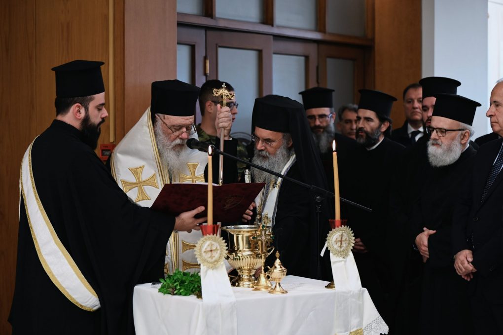 This year, we combined the cutting of the New Year’s Pie, your Beatitude, with the inauguration ceremony of the new entrance and the Distinguished Guests Area, which were a donation of Mr. Georgios Peristeris and GEK TERNA. This is a step towards a broader attempt of reshaping the look of the Ministry of National Defence and its surrounding areas.