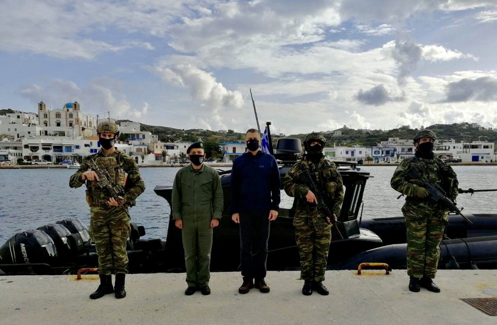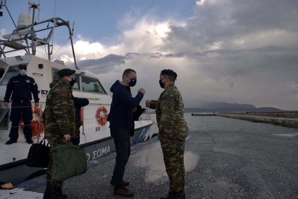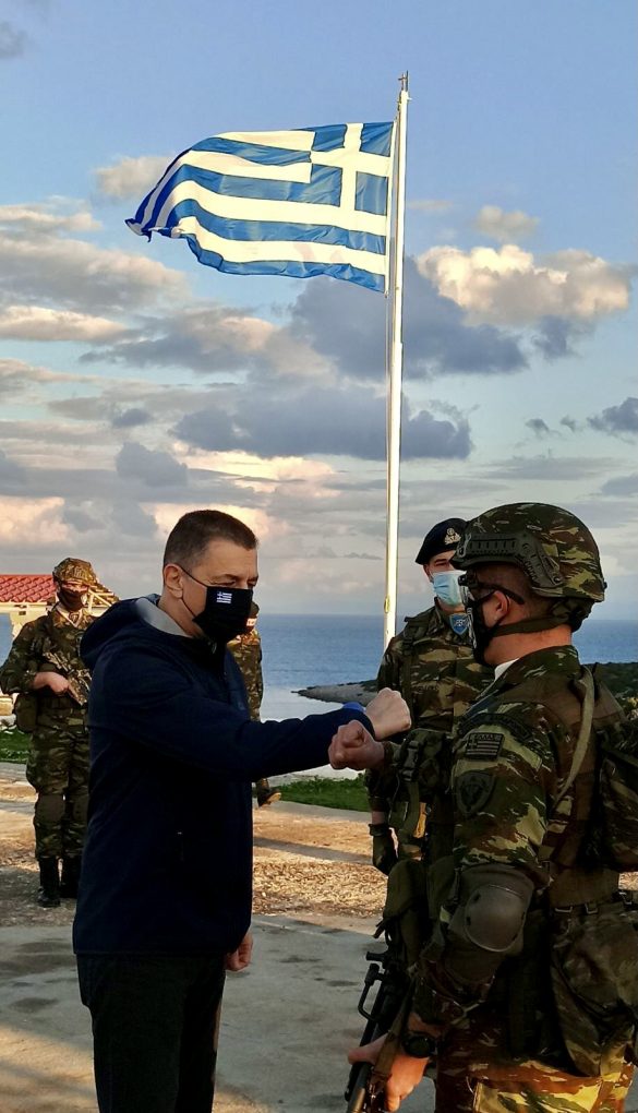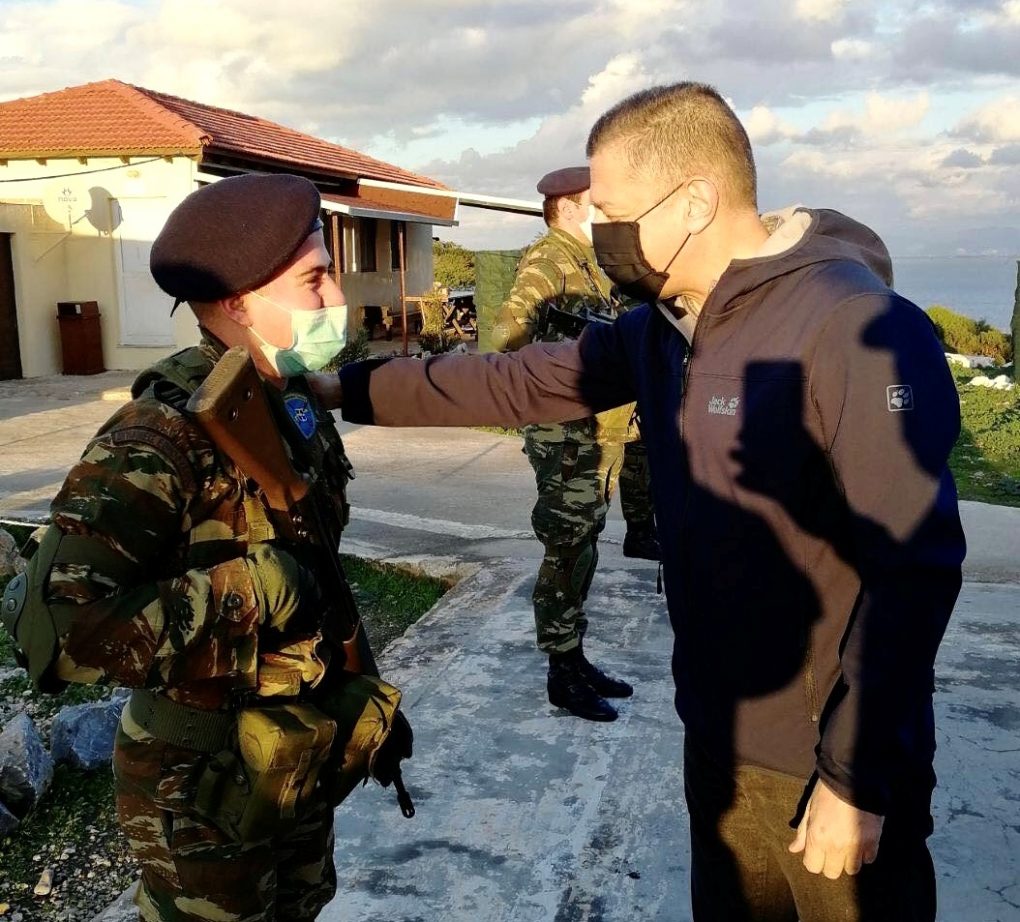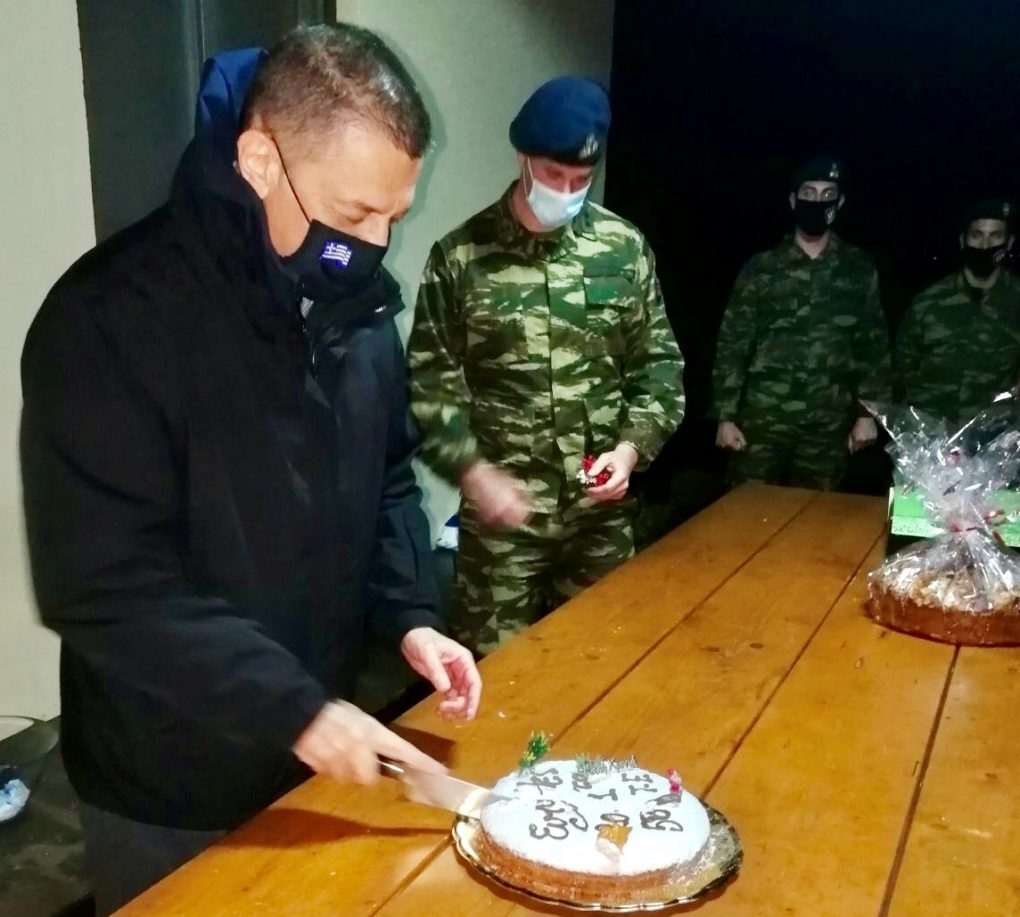 Afterwards, he visited Farmakonissi, where he welcomed the new Year with personnel and conscripts at the Surveillance Outpost of Farmakonissi, where he spent the night.