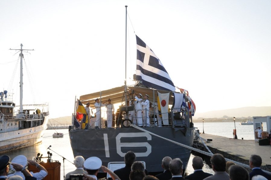 Especially nowadays, when our society suffers from the consequences of the financial crisis and the Greek people have made huge sacrifices over the last years, without any response, without any respect for their effort. Particularly today, when in the name of globalisation, some people ask for national flags to be struck and for national sovereignty to be ceded. The answer to this is from here, from the stern of Velos, that this country, Greek women and men, do not strike the flags, as recently told us the Commander on Kastelorizo island, on Rho, on Stroggyli, on our islands.