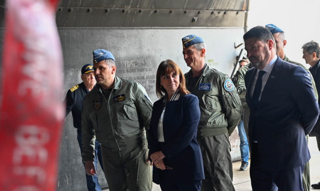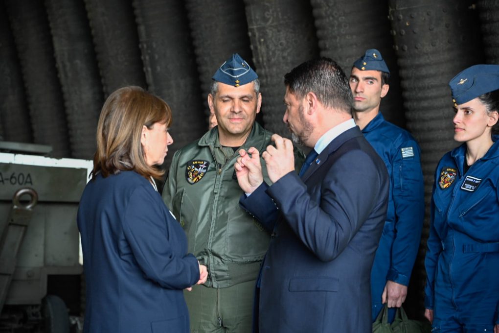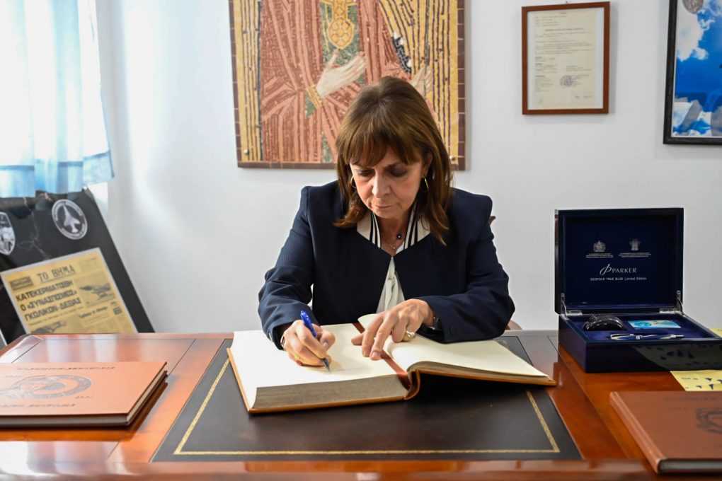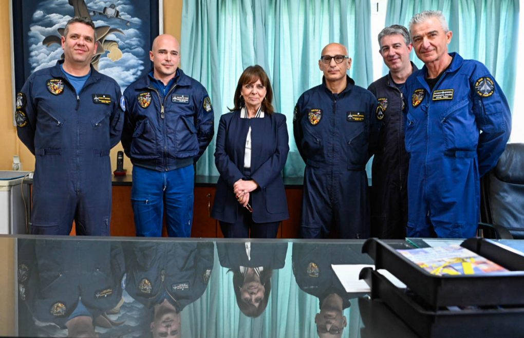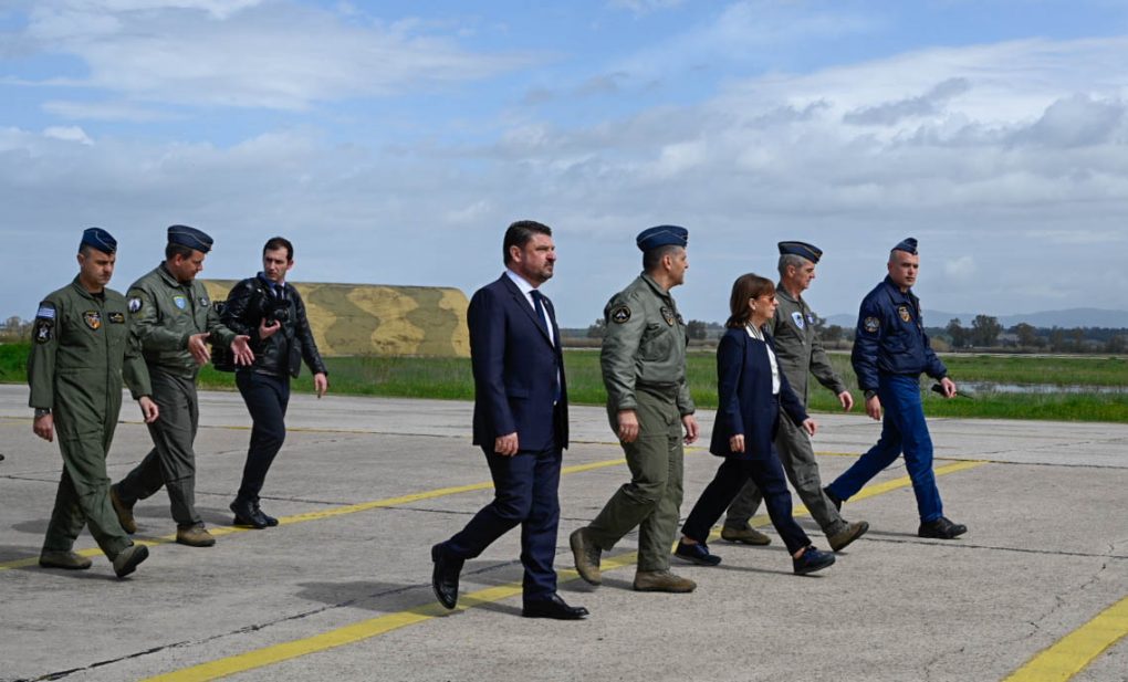 On Wednesday, 15 March 2023, Her Excellency, the President of the Hellenic Republic, Ms. Katerina Sakellaropoulou, visited the headquarters of the 338th Squadron at Andravida Air Base, where she was welcomed by the Deputy Minister of National Defence, Mr. Nikolaos Chardalias, and the Chief of Hellenic Tactical Air Force, Lieutenant General (HAF) Georgios Fasoulas.