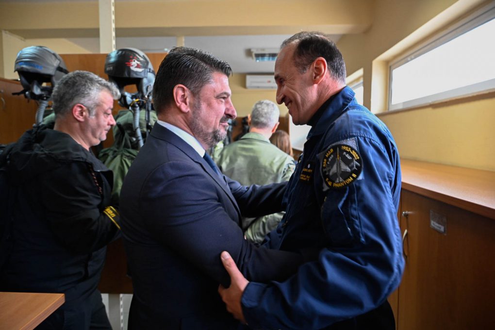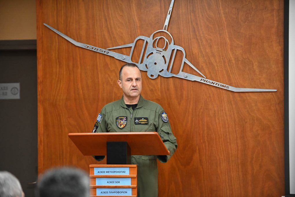 The visit included a briefing by the Commander of the 117th Combat Wing, Colonel (HAF) Avraam Kazantzoglou on the Combat Wing’s and 338th Squadron’s organisation, mission, and operational functions. The Commander of the 338th Squadron, Lieutenant Colonel (HAF) Leonidas Gavriilidis then made a presentation of the actions and procedures before each flight, followed by a demonstration of the Squadron’s F-4E Phantom II aircraft.