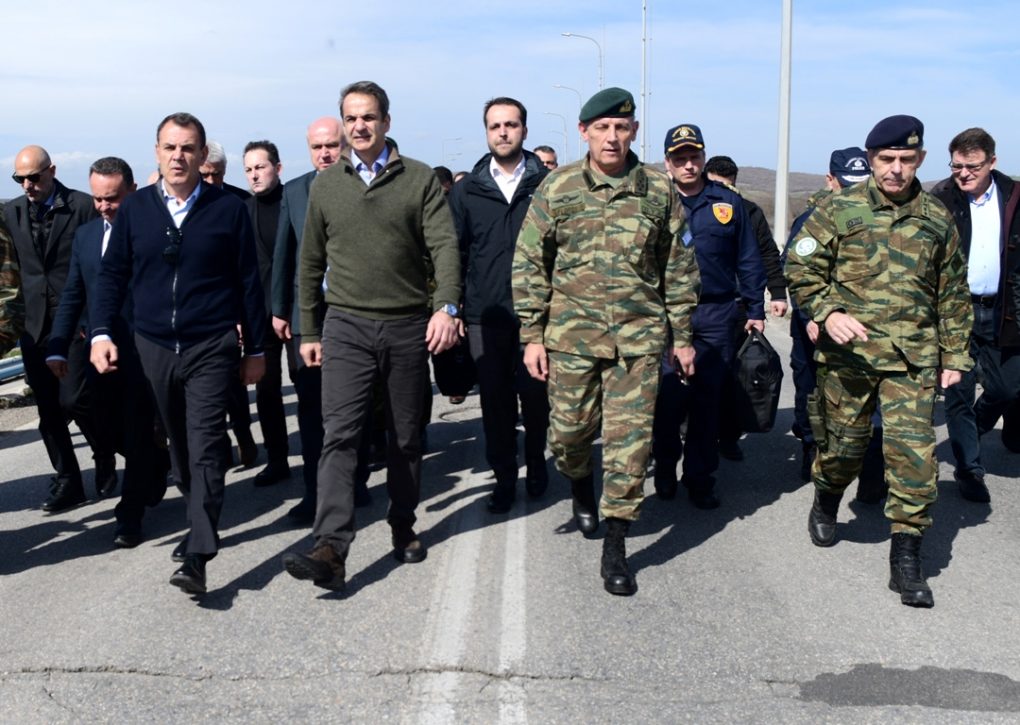 Accompanying the Prime Minister Mr. Konstantinos Mitsotakis today, Tuesday 3 March 2020, to a visit he paid at the border region of Evros, the Minister of National Defence Mr. Nikolaos Panagiotopoulos briefed the PM on matters of military and operational nature,in Feres, the Surveillance Outpost Kipoi and the Surveillance Outpost Kastanies.