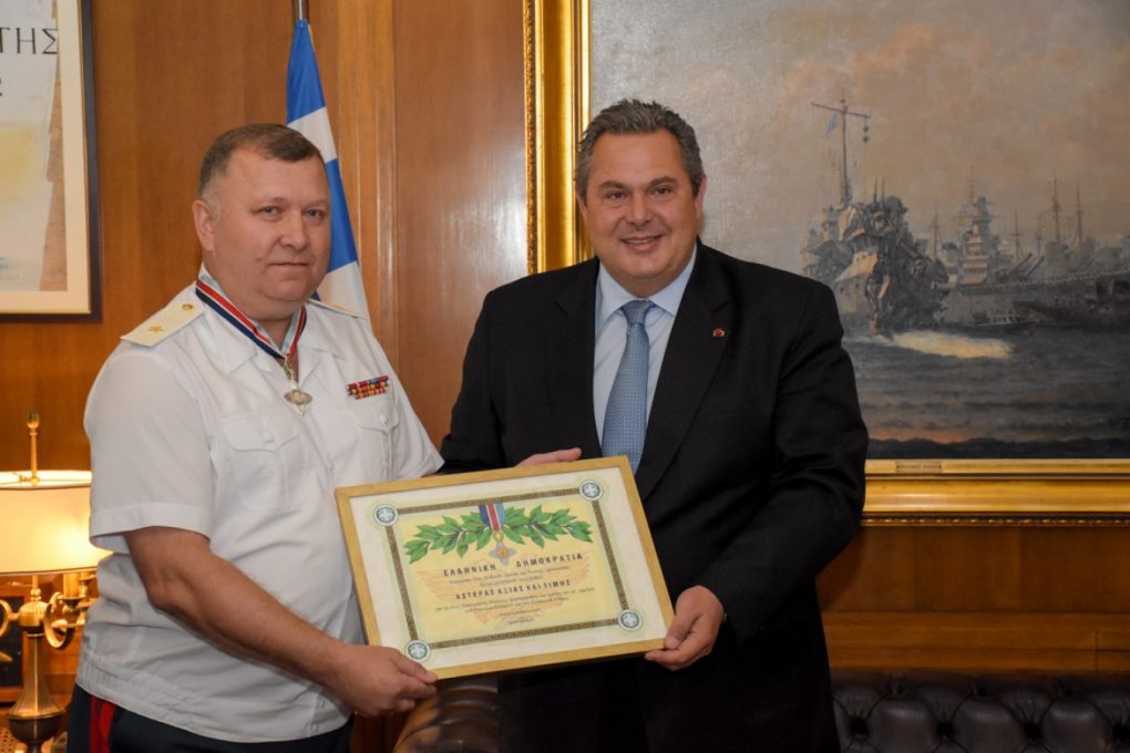 Following a unanimous decision of the Joint Chiefs of General Staff Council, upon recommendation of the Minister of National Defence Panos Kammenos, the Defence Attaché of Russia to Greece Major General Gennady Mozhaev, whose tenure in Greece has been completed, was presented with the Star for Valour and Honour.