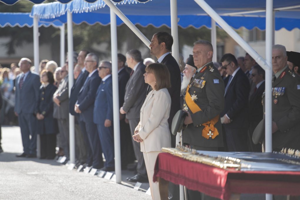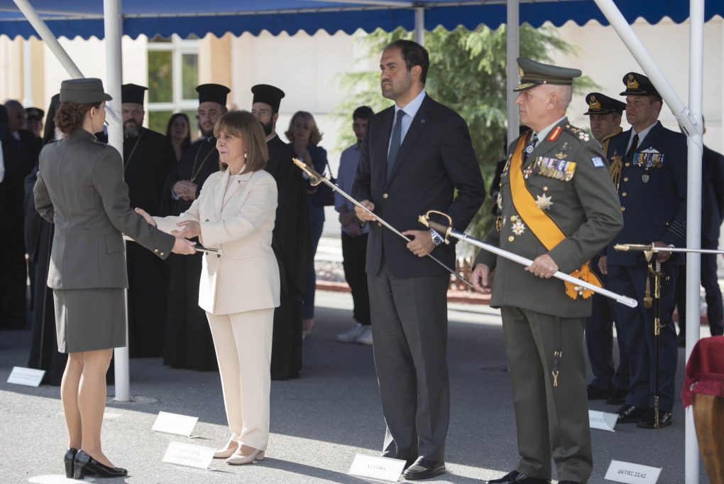 The Deputy Minister of National Defence Mr Ioannis Kefalogiannis, representing the President of the Hellenic Government, attended the oath-taking ceremony of the New Officers of the Military Academy of Combat Support Officers; the ceremony was honoured by the presence of H.E. the President of the Hellenic Republic Ms Aikaterini Sakellaropoulou, who awarded the swords to the Second Lieutenants who took the oath.