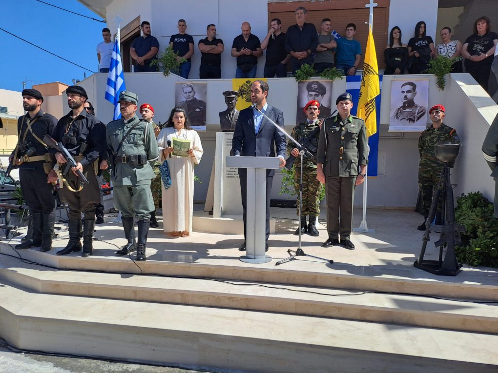 It is a particular pleasure for me to be here, once again, in Livadia of Mylopotamos, a village with a resounding presence in the struggles of Crete. A village with heroic inhabitants, who shed their blood for the tree of freedom. And joy becomes emotion and pride, since we are called to honour the memory of the heroes of the Vamvoukas Family. Officers gifted with morality, morale and bravery, who were the protagonists of our homeland’s history and with awe we voice their names: