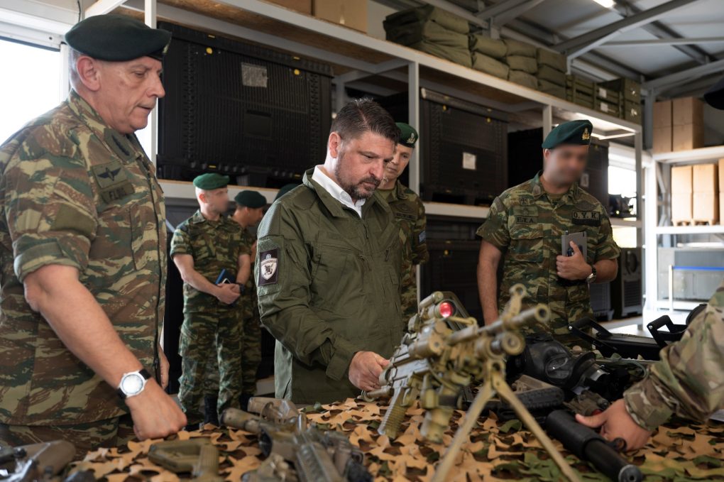 The Deputy Minister of National Defence was briefed by the Commander of the Special Warfare Command, Lieutenant General Georgios Tsitsikostas and the Commander of the Special Forces Training Centre Colonel Georgios Gavounos, on the organisation, mission, training curriculum, operational work and the current activities of the Command, of its subordinate units and of the Centre correspondingly.