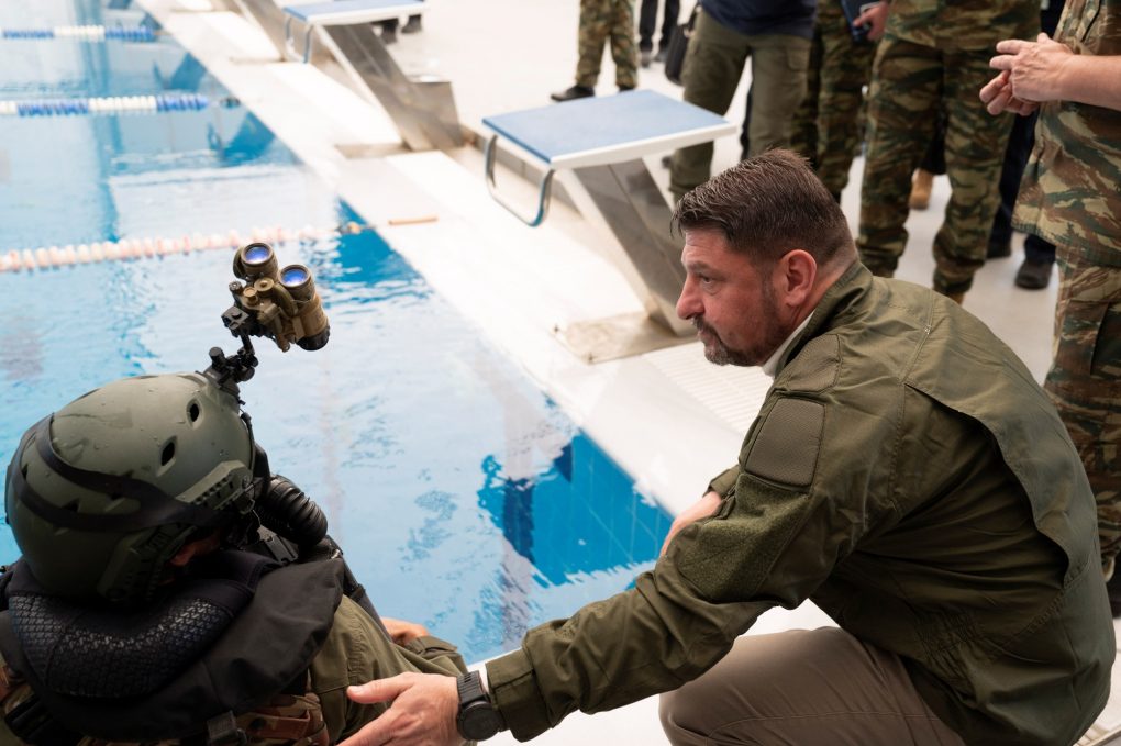 In the context of the visit, Mr Chardalias was given a tour of the facilities of the Special Forces Training Centre, of the Special Paratroopers Detachment and the Zeta Amphibious Raider Squadron, he observed a fixed weapon systems, materials and assets demonstration of the Special Paratroopers Detachment and Zeta Amphibious Raider Squadron, as well as the ongoing training of their members on subjects of Battle Swimming.
