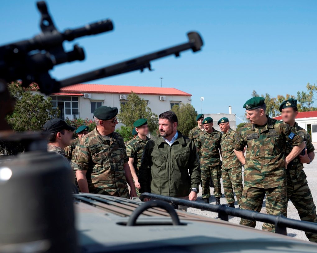 The Deputy Minister of National Defence Mr Nikolaos Chardalias, in the context of his daily contacts with members of the Armed Forces, went today, Tuesday 24 May 2022, to the “Major General Andreas Kallinskis” Camp, in Nea Peramos – Attica, where he conducted a visit to the Special Forces Training Centre, the Special Paratroopers Detachment and the Zeta Amphibious Raider Squadron, accompanied by the Chief of HNDGS General Konstantinos Floros.