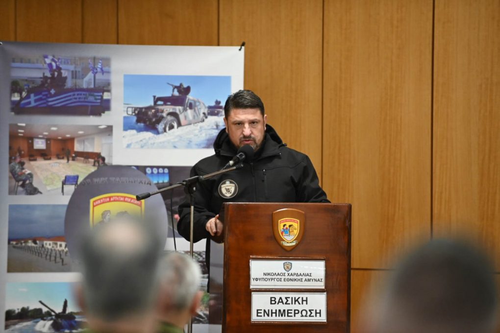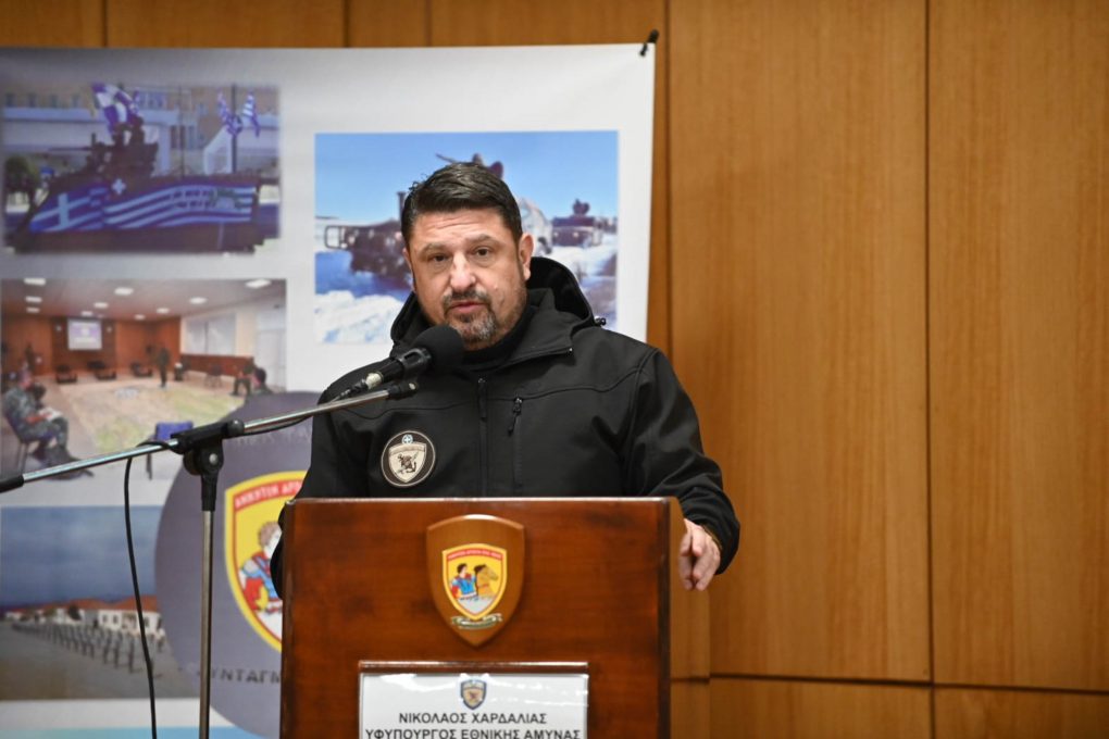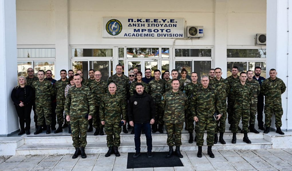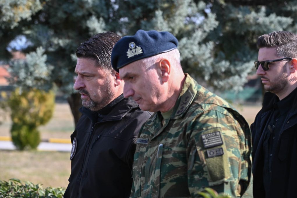 The Deputy Minister of National Defence Mr Nikolaos Hardalias visited yesterday, Thursday 9 February 2023, the HQ of the 33 Mechanised Brigade in Polykastro and the premises of the Multinational Peacekeeping Operations Training Centre in Kilkis, accompanied by the Commanders of the 1st Army/EU–OHQ Lieutenant General Ioannis Tsioplios and of C’ Army Corps/NRDC-GR Lieutenant General Paris Kapravelos.