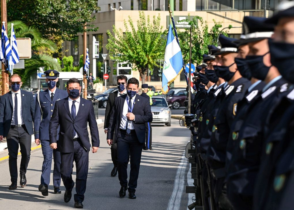 The Deputy Minister of National Defence, Mr. Nikolaos Hardalias, representing the Ministry of National Defence, attended on Wednesday 20 October 2021, the events on the occasion of the celebration of the “Hellenic Police Day” and the Patron of the Corps, Great Martyr Saint Artemios, which were held at the forecourt of former Hellenic Police Officers’ School.