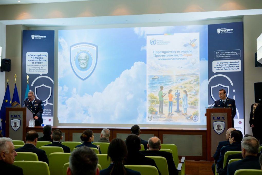 The Deputy Minister of National Defence Thanasis Davakis, today 23 March 2026, attended the celebration of “World Meteorological Day 2026”, organised by the Hellenic National Meteorological Service and the Hellenic Meteorological Society. There, he was received by the Chief of Staff/HAFGS Major General Matthaios Kanoupakis (HAF), and the Commander of the National Meteorological Service Colonel (Met) Ilias Patsiouras (HAF).