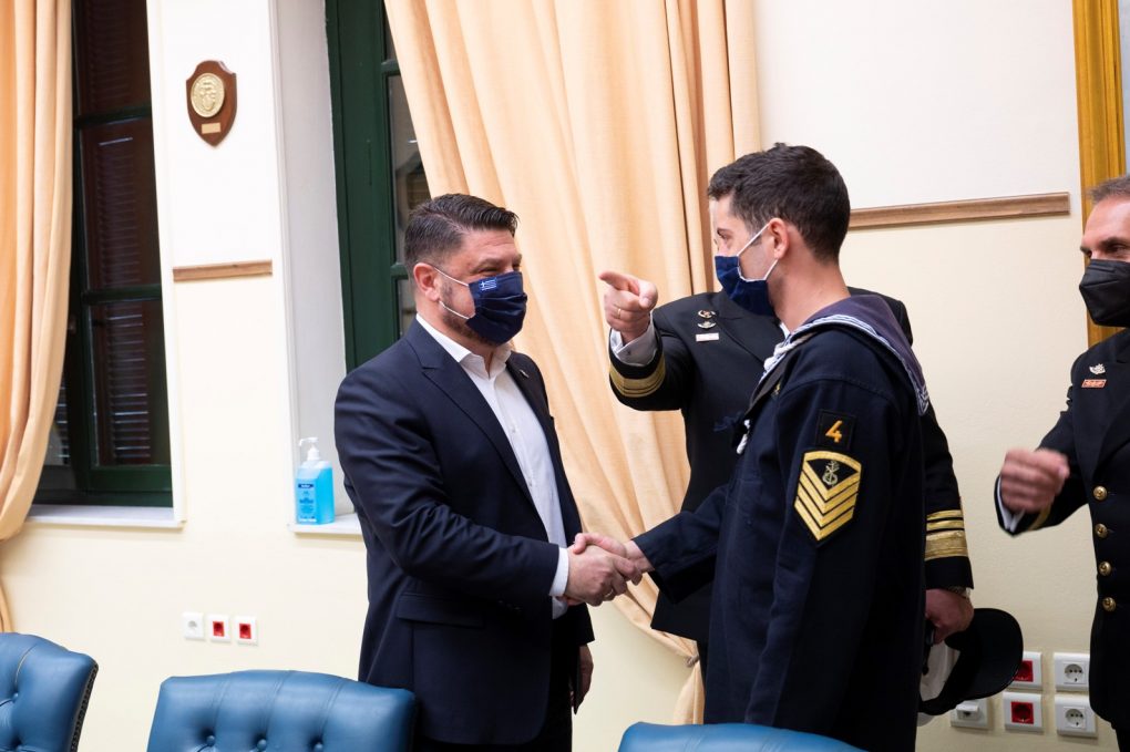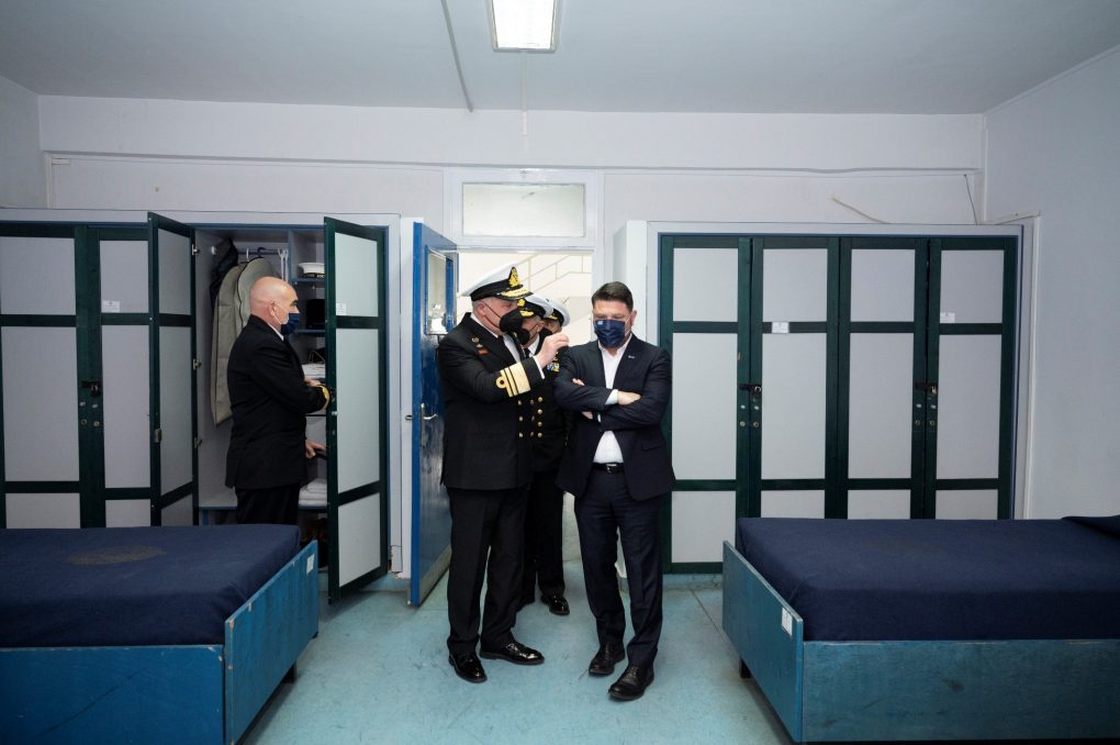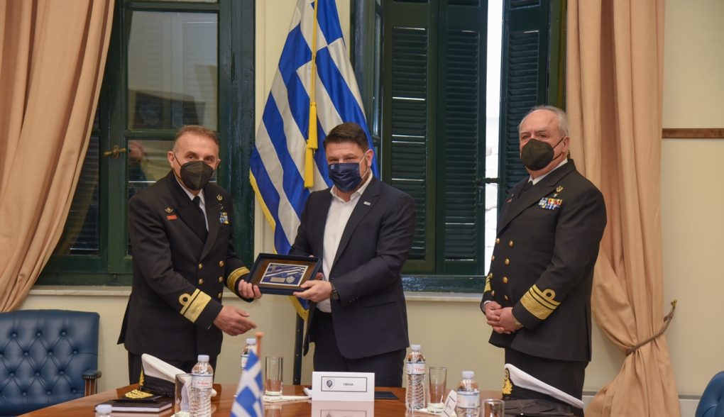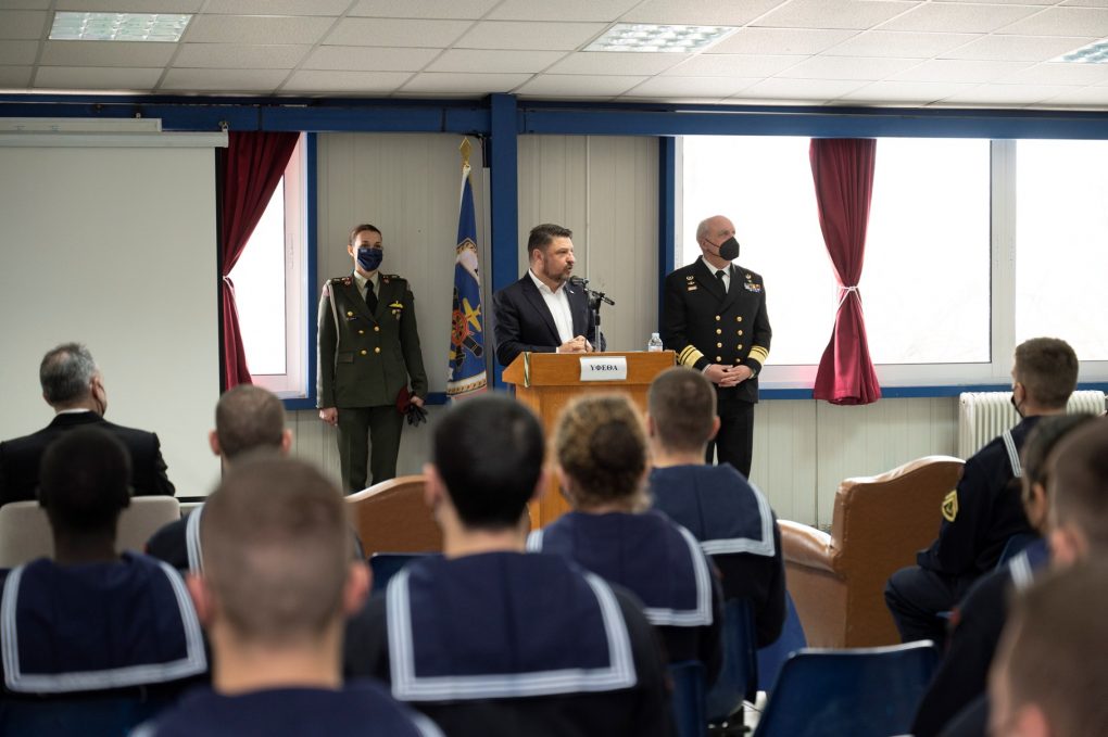 In the context of the visits, Mr Chardalias was briefed by the Commanders of the Academies, Rear Admiral Ioannis Pattas (Hellenic Naval Academy) and Captain Charalambos Gavalas (Hellenic Naval NCOs Academy), on the organisation, the programmes of military – naval and academic training and their current activities. Afterwards, he was given a tour of their facilities, while he also talked with their members and briefly addressed the students of the Academies.