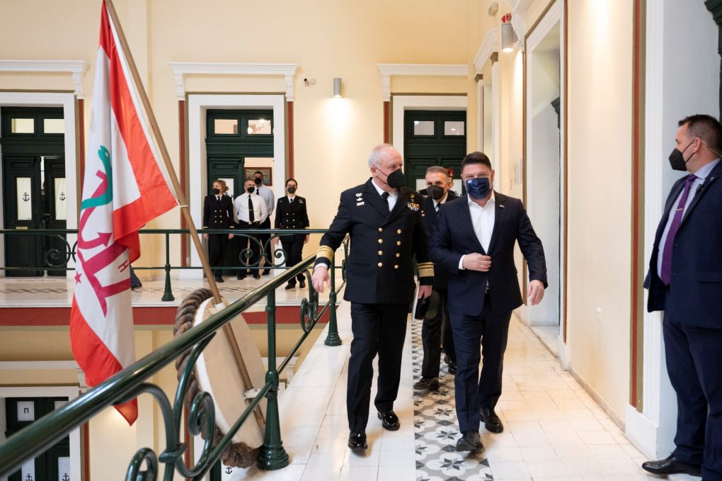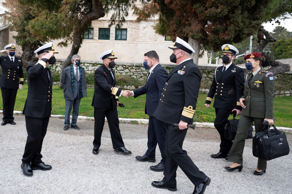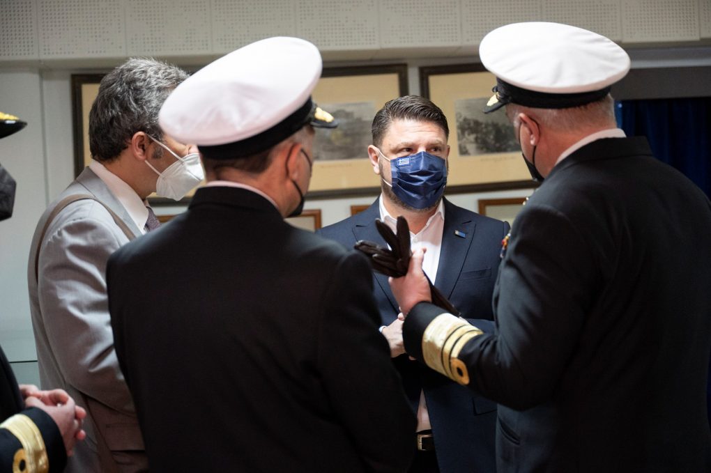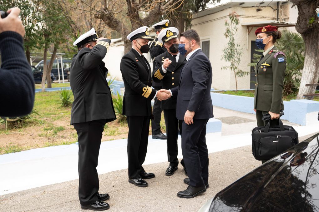 The Deputy Minister of National Defence Mr Nikolaos Chardalias conducted, today Monday 28 March 2022, visits to the Hellenic Naval Academy in Piraeus and to the Hellenic Naval NCOs Academy in Skaramagas, accompanied by the Chief of HNGS Vice Admiral Stylianos Petrakis.