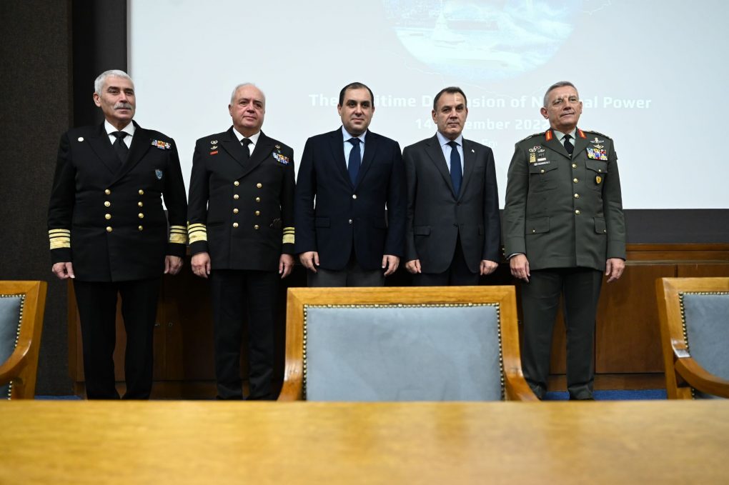 The Minister of National Defence Mr Nikolaos Panagiotopoulos declared today, Wednesday 14 December 2022, the commencement of proceedings of the 1st Sea Power Conference, which is hosted by the Hellenic Navy General Staff and takes place at the Eugenides Foundation.