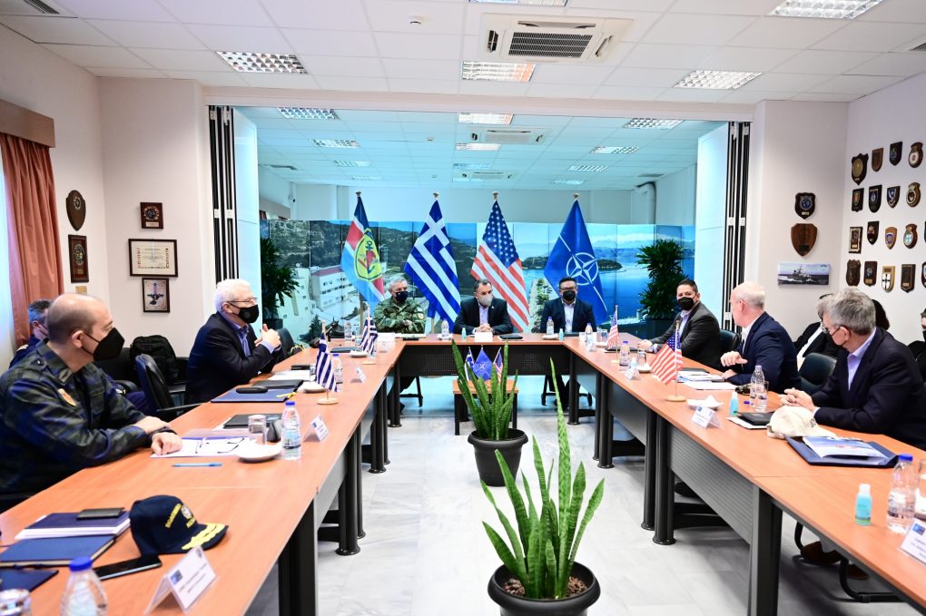 The Minister of National Defence, Mr. Nikolaos Panagiotopoulos, visited today, Thursday 14 April 2022, the facilities of the NMIOTC in Souda – Crete, in the presence of US Ambassador in Greece Mr. Goeffrey R. Pyatt and US House of Representatives Members led by Mr. Salud Carbajal.
