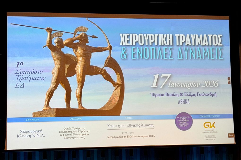 Today, Saturday, 17 January 2026, the Minister of National Defence Nikos Dendias attended the 1st Armed Forces Trauma Symposium, whose topic was “Trauma Surgery and the Armed Forces”, which took place at the Basil & Elise Goulandris Foundation.