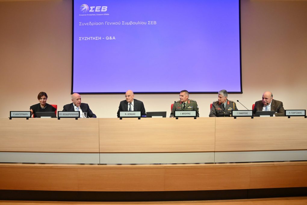 The Minister of National Defence Nikos Dendias attended today, Thursday 6 November 2025, the General Council of the Hellenic Federation of Enterprises, where he delivered an address on the issue of support of the domestic productivity in the field of Defence.