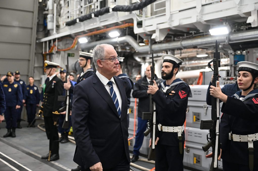 The Minister of National Defence Nikos Dendias, attended today, Thursday 15 January 2026, the at-sea reception ceremony of the first FDI HN (Belh@rra) frigate, F-601 “KIMON”, in the Saronic Gulf, in the presence of His Excellency the President of the Hellenic Republic Konstantinos Tasoulas and Prime Minister Kyriakos Mitsotakis.
