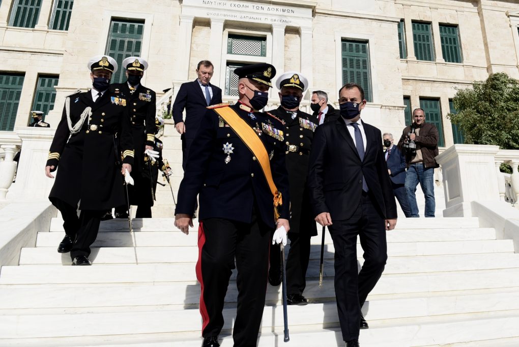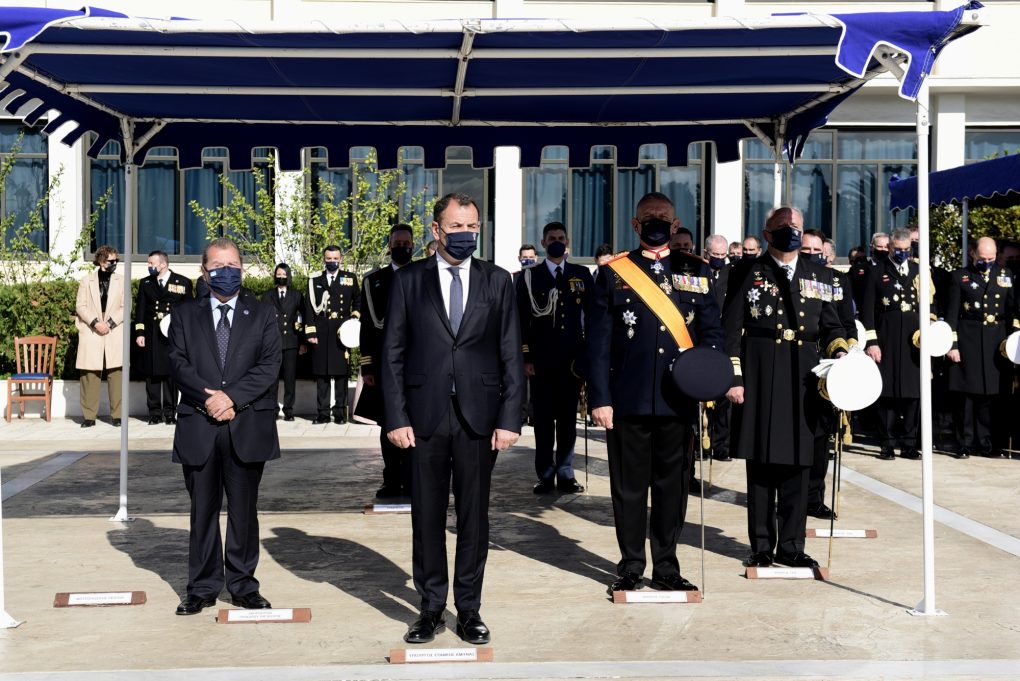 The Ministry of National Defence Mr Nikolaos Panagiotopoulos attended today, Monday 6 December 2021, the celebration of the Patron of the Hellenic and Merchant Navy, Saint Nikolaos, which was conducted at the Hellenic Naval Academy in Piraeus, officiated by His Reverence the Metropolitan Bishop of Piraeus Mr Serafeim.